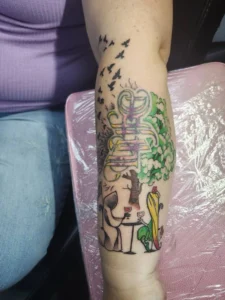 Kaitlin has been in the industry for over 7 years! With her degree in drawing and painting, she is very passionate about providing her clients with a work of art! Kaitlin specializes in fine line, color and black and grey. She enjoys fingerprint and handwriting tattoos. Kaitlin is also a licensed piercer!